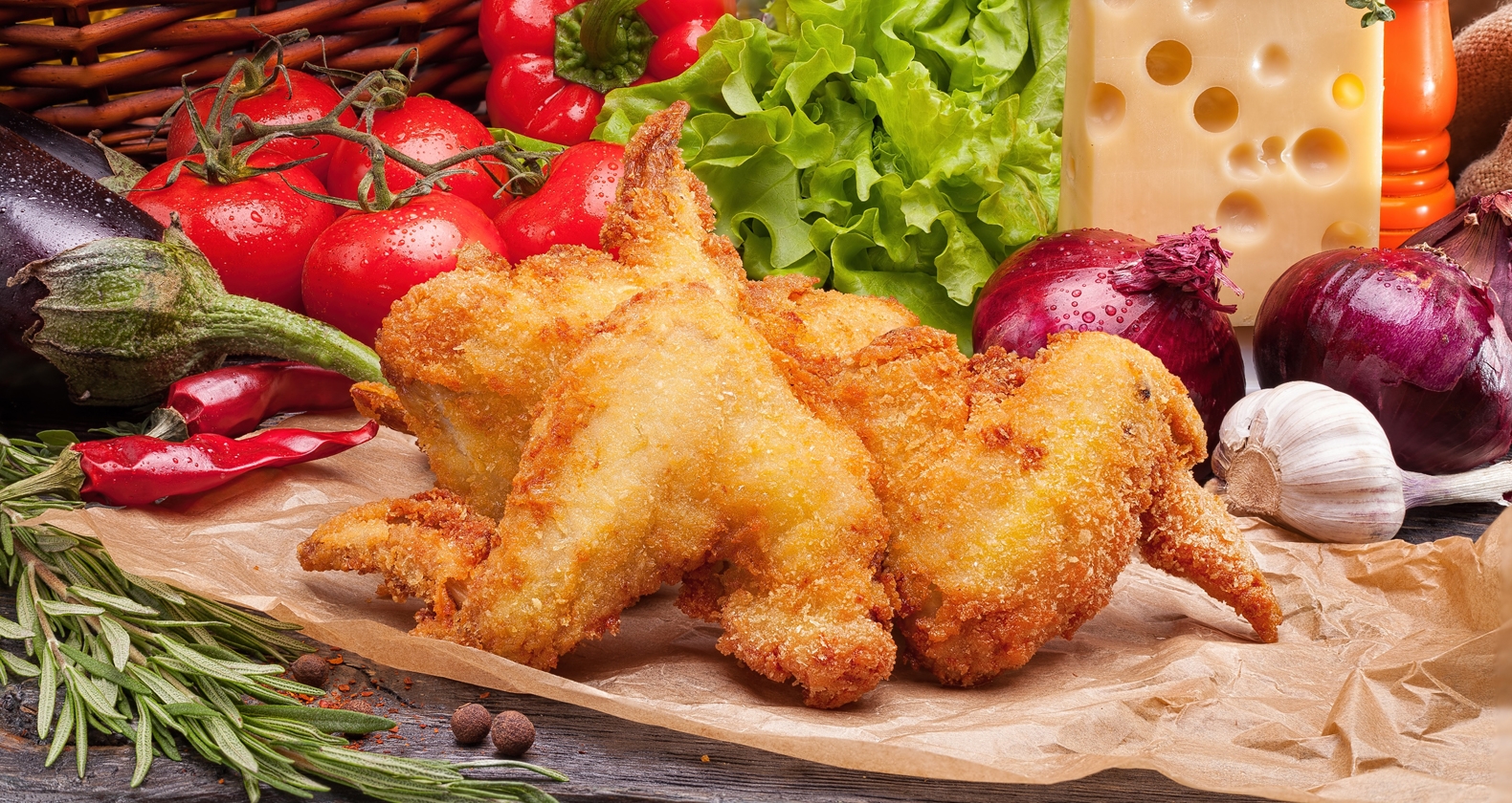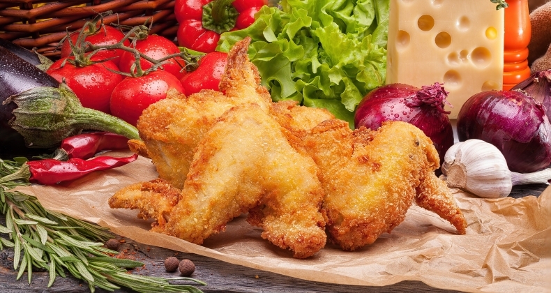 Куриные крылышки, панированные в сухарях, обжаренные во фритюре. Рекомендуется с соусом барбекю.