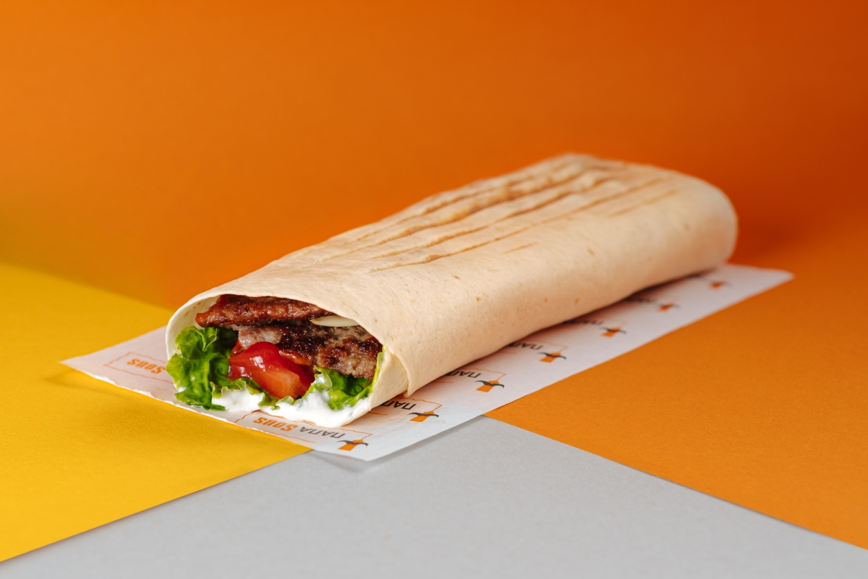 (Все в двойном размере) Рубленный говяжий бифштекс со специями, ломтик сыра, хрустящий салат, ломтики сочного томата в зажаренной пшеничной лепешке, заправленной томатным соусом и фирменным соусом.